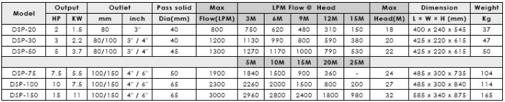 Biểu đồ lưu lượng máy bơm chìm hút bùn APP DSP-20T