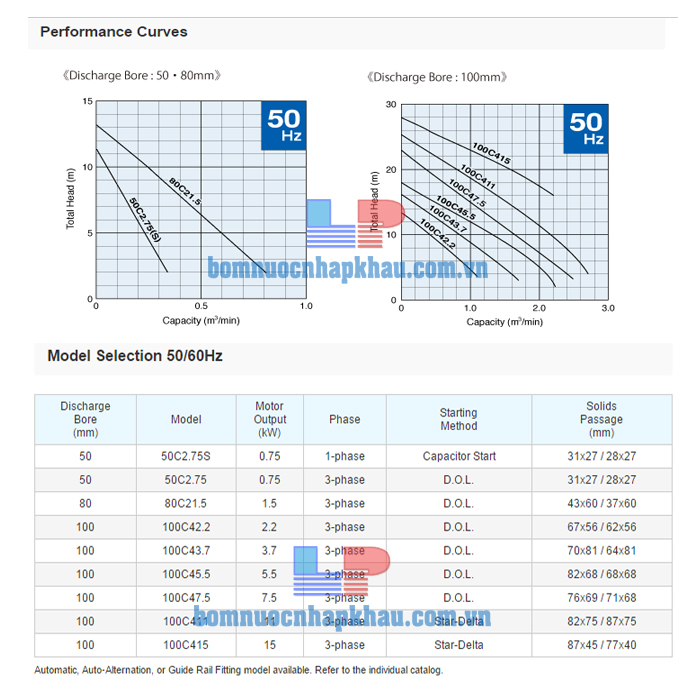 Máy bơm chìm nước thải cánh cắt Tsurumi 100C43.7