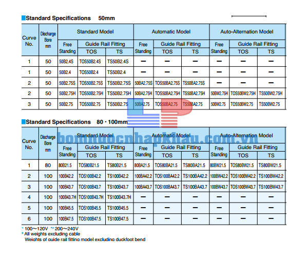 BƠM CHÌM NƯỚC THẢI CÁNH KÍN TSURUMI 50B2.75S (0.75KW)