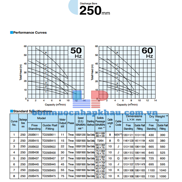 BƠM CHÌM NƯỚC THẢI CÁNH KÍN TSURUMI 250B622 (22KW)