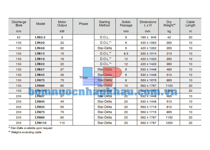 - Thiết kế máy bơm chìm nước thải - xây dựng loại đẩy cao Tsurumi LH6110 có độ ăn mòn thấp