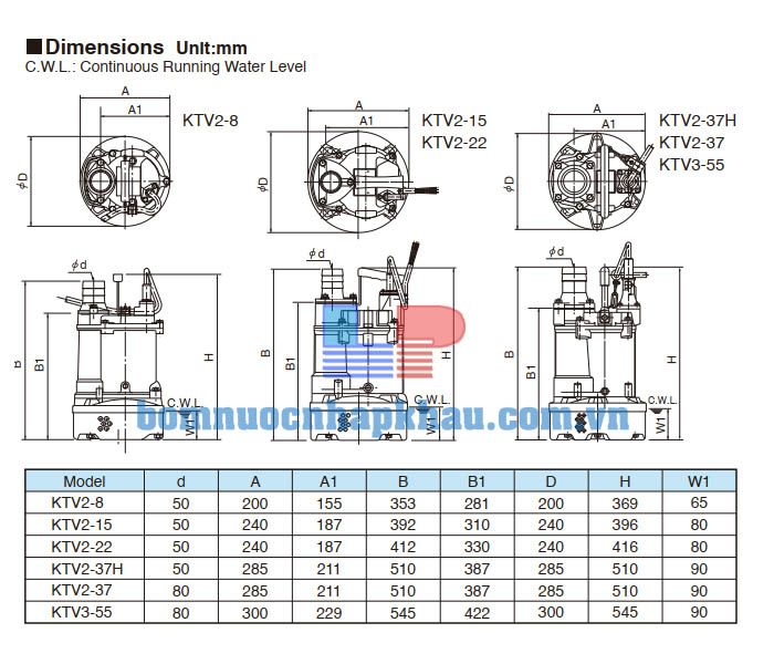 BƠM CHÌM NƯỚC THẢI - XÂY DỰNG TSURUMI KTV2-8 (0.75KW)