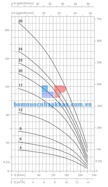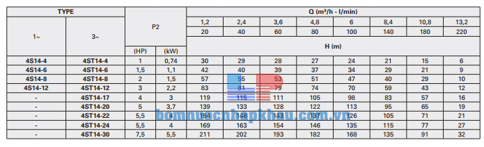 Biểu đồ lưu lượng máy bơm hỏa tiễn 4 inch Pentax 4S 14-8