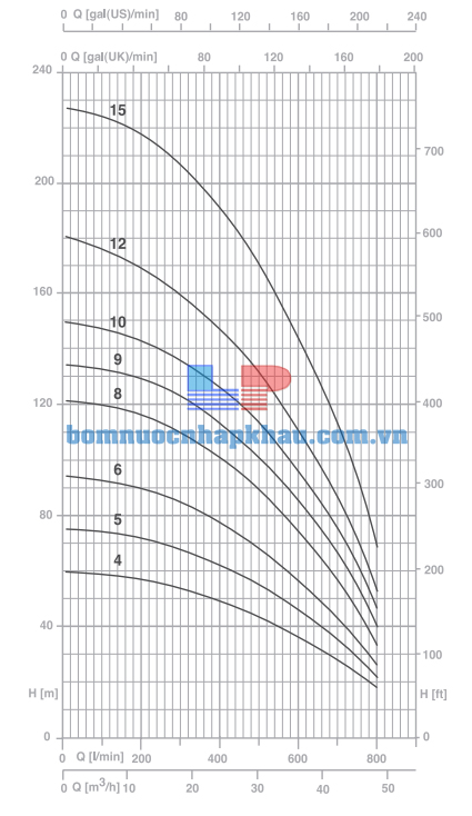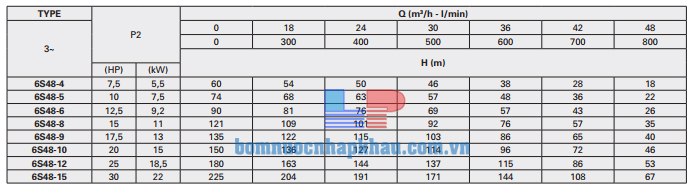 Biểu đồ lưu lượng máy bơm hỏa tiễn 6 inch Pentax 6ST 48-10 (20Hp)