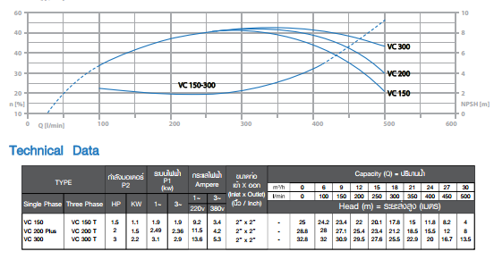 Biểu đồ lưu lượng của máy bơm ly tâm trục ngang Venz VC300T