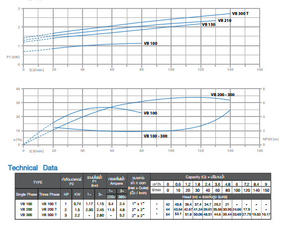 Biểu đồ lưu lượng của máy bơm ly tâm trục ngang Venz VB300T