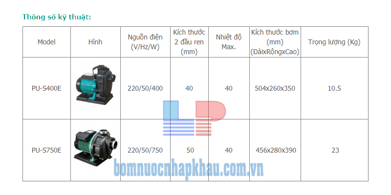 MÁY BƠM NƯỚC BIỂN TỰ MỒI WILO PU-S750G