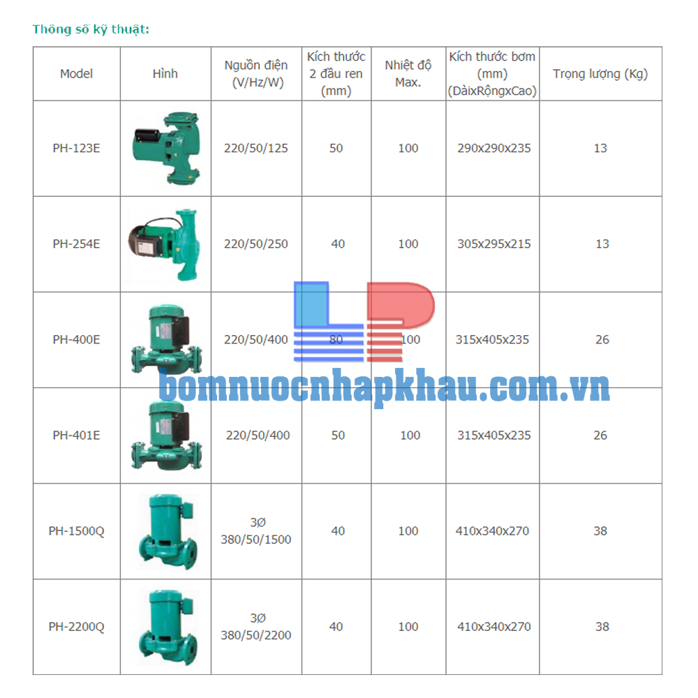 MÁY BƠM TUẦN HOÀN NƯỚC NÓNG WILO PH-401E