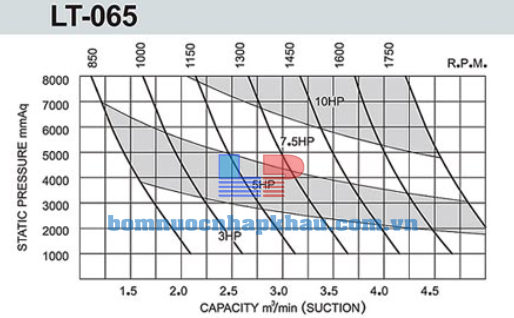 Biểu đồ lưu lượng máy thổi khí Longtech LT-065