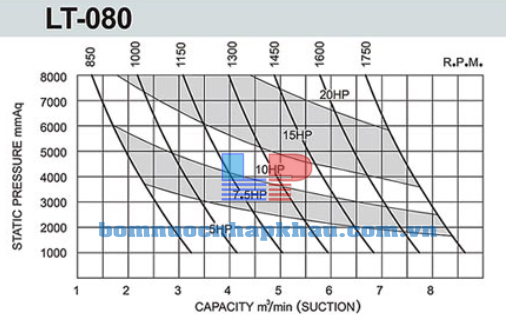 Biểu đồ lưu lượng máy thổi khí Longtech LT-080