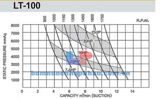 Biểu đồ lưu lượng máy thổi khí Longtech LT-100